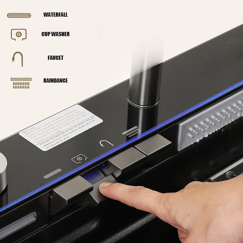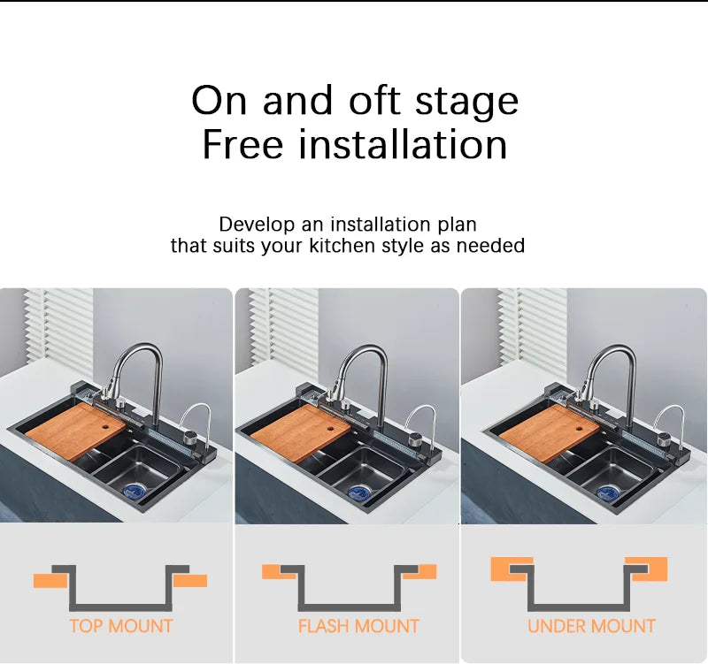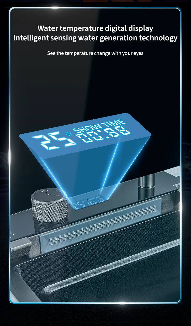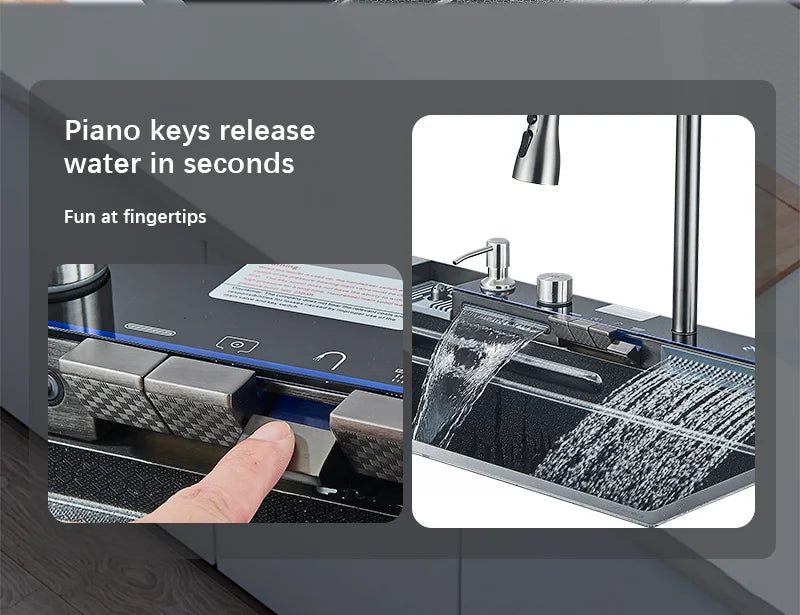 304 Stainless Steel Waterfall Kitchen Sink Large Single Slot Integrated Digital Display Faucet Set Soap Dispenser Cup Washer