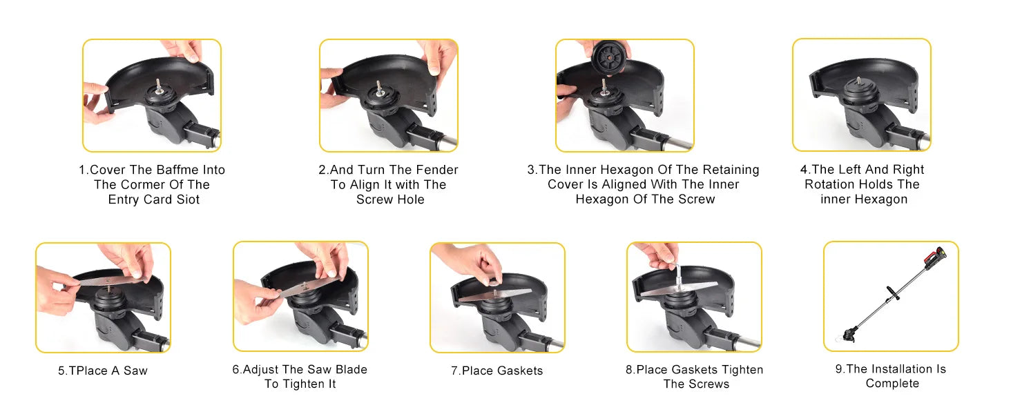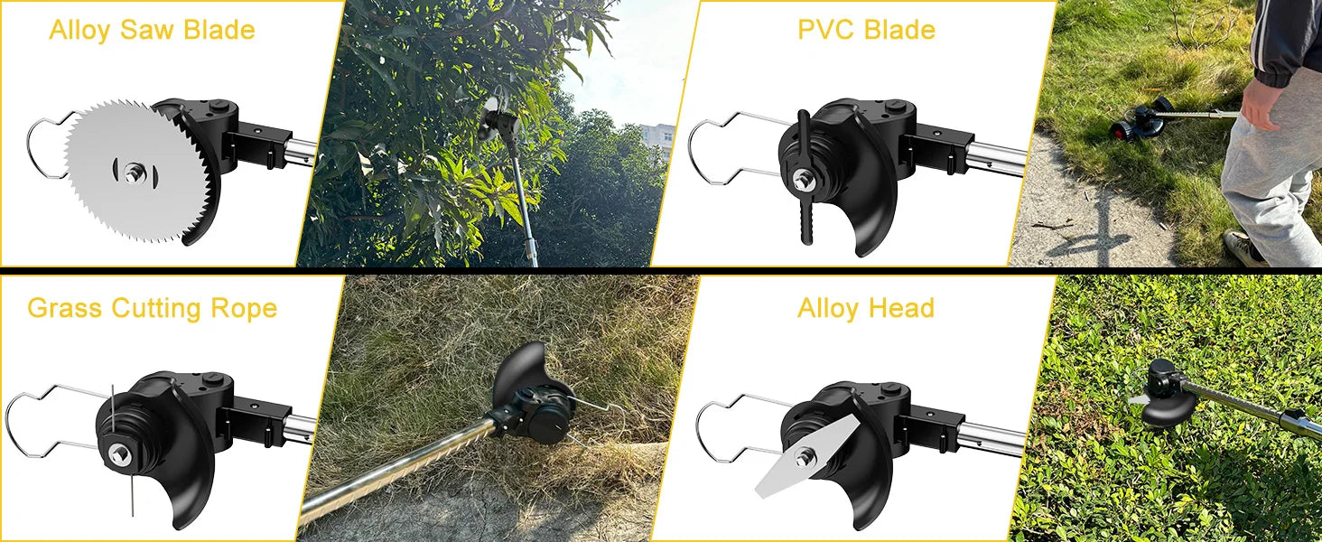 4 types of blades: The Conentool lawn mower includes 4 types of blades to meet your different cutting needs, suitable for harvesting shrubs, weeding in complex terrain and trimming lawns.